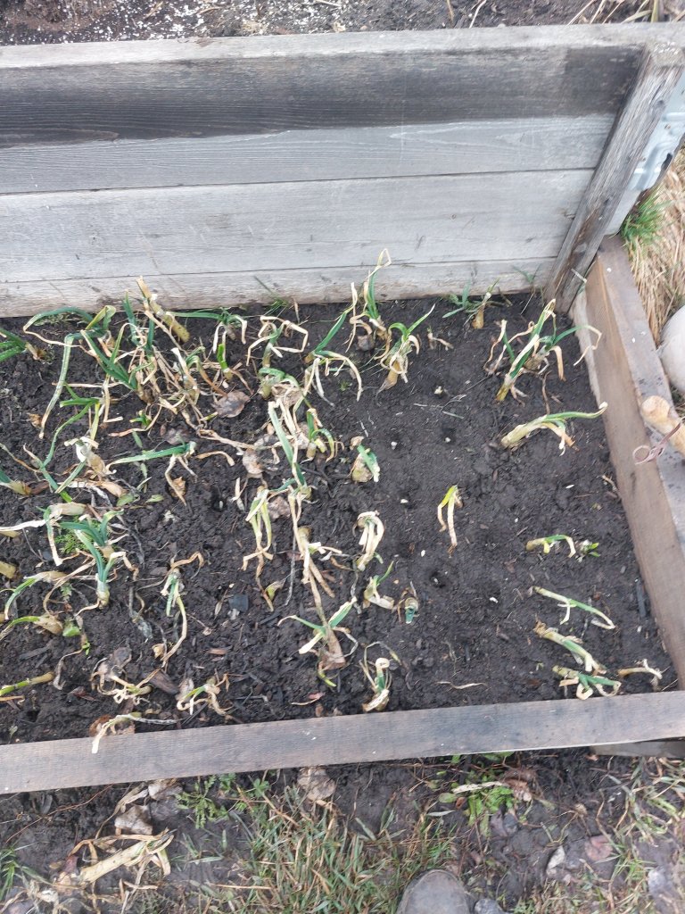 In the meantime, over the past couple of days, my process has had me working on mental exercises (sorting out what happened and what my responses to it were and meant) while doing the physical- resulting in some firmer plans for the yard and greenhouse, 2 planters of onions in, and some interesting discoveries in last year’s onion patch.